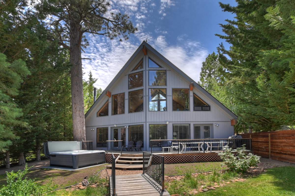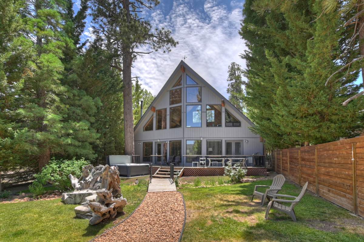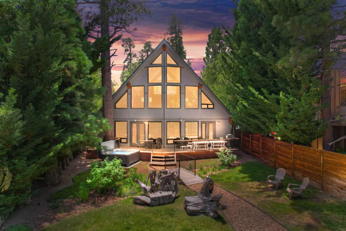 Live the lakefront lifestyle in beautiful Big Bear Lake. This tastefully updated chalet-style home has it all. The impressive great room boasts soaring cathedral ceilings, abundant wood T&G, a wall of windows and french doors that open to the sunny back deck and landscaped back yard. Designed for entertaining, the living areas flow together and include a formal dining area with a native rock fireplace. Kitchen has been updated with granite and stainless. Relax or play in the loft are which has a new slate pool table and great views of the lake. 4 bedrooms and 3 full baths, including 2 master suites, all on the main level, allow room for a crowd and easy access. Over $100,000 worth of improvements over the last few years including all new carpet and tile throughout (except kitchen), new 50-year GAF Golden Pledge roof installed in 2020, new garage door, new natural gas BBQ, new spa, new furniture in all bedrooms and living room, new window blinds throughout, new forced air unit (two FAUs efficiently heat the whole house), updated landscaping. Garage has been modified with a taller door and a deeper section for boat storage (currently houses a 23-foot wake boat). Included is the quality custom dock and gangway with aluminum frame, Trex deck, and new stairs built this year. Go take a look – this turnkey property is ready for you to start making your lakeside memories today.