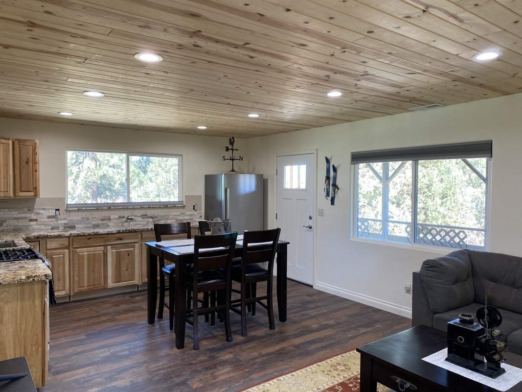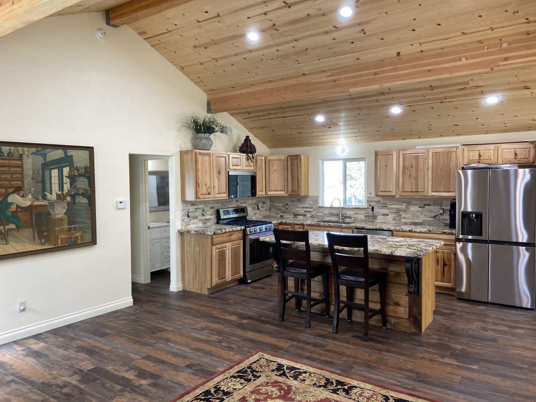 Looking for versatility? Put the final finishing touches on the nearly-completed remodel of this beautiful custom Shay Meadow home. This property has so much to offer. Main level great room style floor plan has vaulted T&G ceilings and recessed lighting; modern gas fireplace with a hearty hand-hewn log mantel. Sparkling kitchen has an island, high-end stainless, rough-edge granite, and stacked stone backsplash. Two bedrooms and bath on the main level. Beautiful and durable distressed luxury vinyl plank flooring flooring throughout (considered the most water resistant flooring on the market). Upper level could be used as a separate mother-in-law unit or rental space; has separate entry with it’s own remodeled kitchen, living area, bedroom, bath, and private covered deck with views of the meadow in the distance. The majority of insulation, plumbing, and electrical is new throughout, including two new electrical panels, 220V for RV or EV in the 3-car garage which also has heat and laundry hookups. Two new forced air heaters (one for each level), tankless water heater, new windows and doors, new roof on front part of house. Large property with fenced back yard and easy all-season access with room to park RV or boat. This would make an excellent full-time residence, multi-generational home, income-producing rental, or some combination thereof.