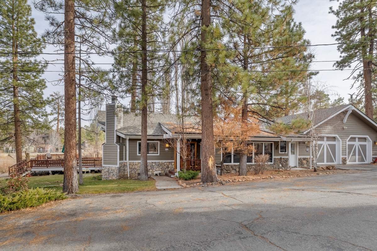Charming elegant remodeled lakefront home on Mallard Lagoon. This one-of-kind home has the rustic mountain cabin feel with modern upgrades and amenities. Impressive beamed ceilings w/skylights, majestic stone fireplace and beautiful slate floors with radiant heating. Entertainer’s dream kitchen features extensive granite, breakfast bar, large island w/prep sink, and custom painted cabinets that feel like living in a real-life fairy tale. Garage was converted into inviting living space that could be used as a family room or game room w/access to back deck, and has an additional attached bedroom + bathroom with laundry. Enjoy summer BBQs and starry winter nights out on the spacious back decks. Easy year-round access, single-level living on a sprawling 1/3 acre of prime real estate. Included boat slip at The Dock Club at Pine Knot Marina! Start your Big Bear Lake story today.