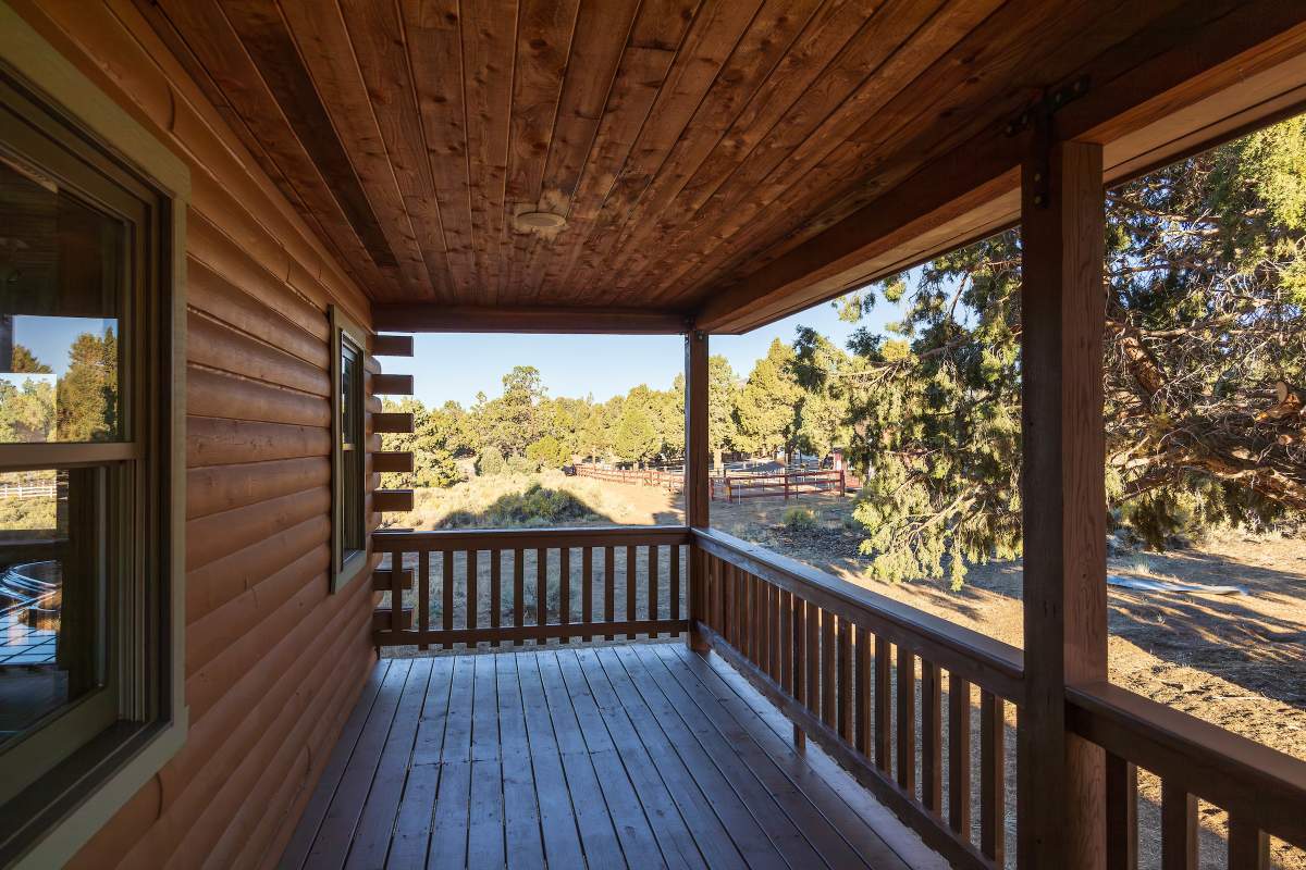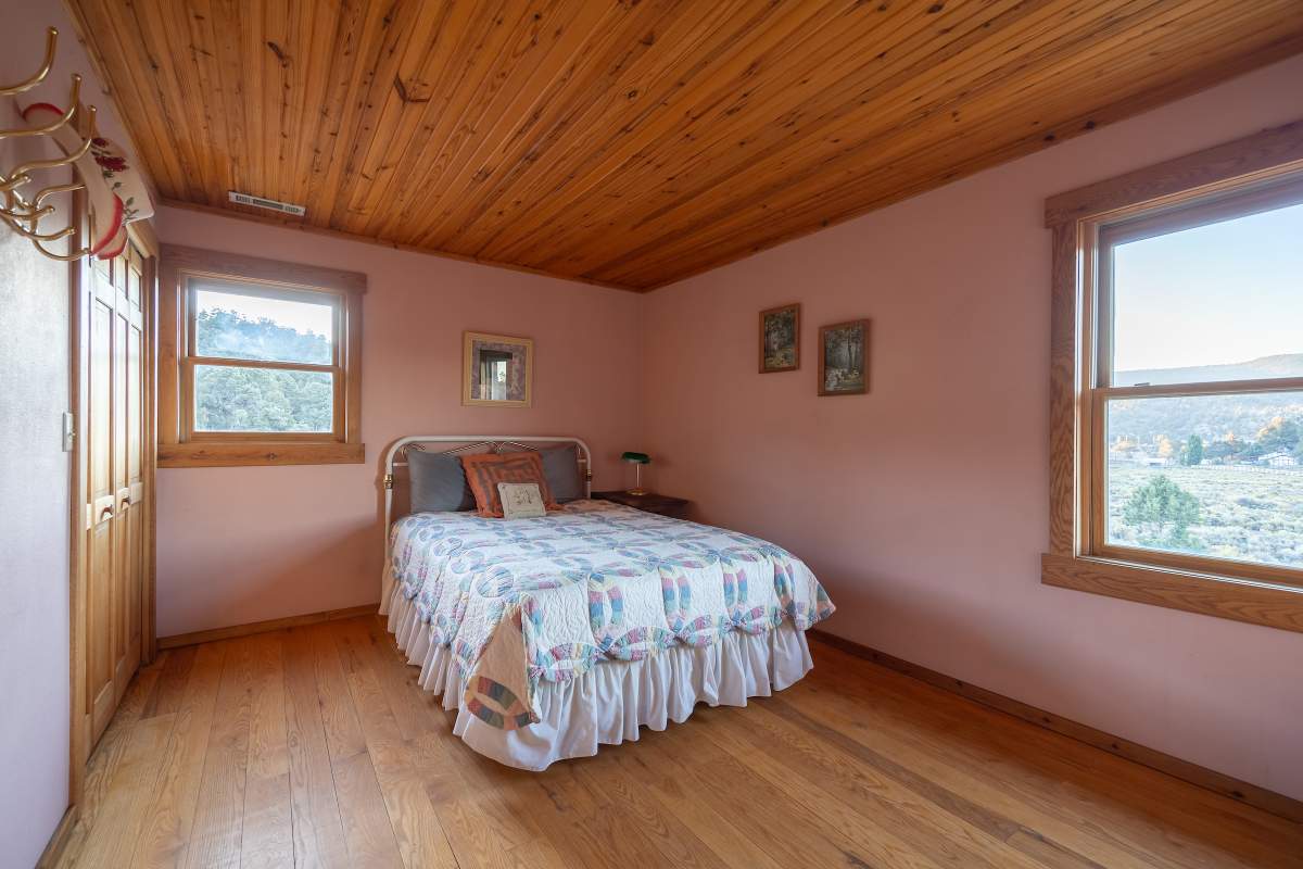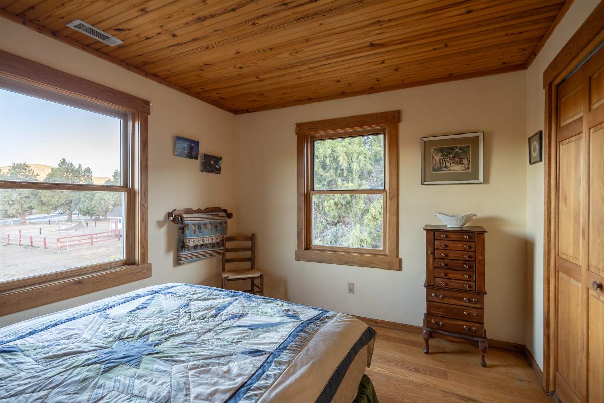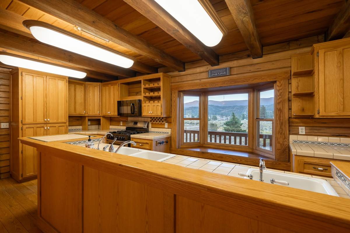 Home…home on the range. Nestled on 2.5 acres in a hidden valley adjoining national forest, you will find this beauty of a custom log home offering ultimate peace and tranquility with wide open views in all directions. Off the beaten path, but easily accessible from the highway, and just steps to the iconic Pacific Crest Trail. Enter the front door and you are welcomed to an impressive great room with soaring T&G ceilings and a grand river rock fireplace. Beautiful solid hardwood flooring throughout, tons of windows allow for washes of natural light in every room. Entertainer’s kitchen has a bay window, an island with additional prep sink, custom cabinetry, and adjacent formal dining room with beamed ceiling and access to the covered back deck. This accommodating ranch-style home has room for a crowd with 6 bedrooms, plus a spacious 1429 sq ft finished basement providing additional living space and myriad storage options, including a wine closet. The primary bedroom on the main level features beamed ceilings, a walk-in closet, and french doors opening to deck; the en suite bathroom boasts an elegant spa tub and separate walk-in shower. Energy efficient items include dual pane windows, central forced air heat, two water heaters, plus laundry. The property is on it’s own private well. This home has been lovingly refreshed and is ready for you to add your personal touches to make it yours. Bandit the burro says: “The apples here are delicious.”