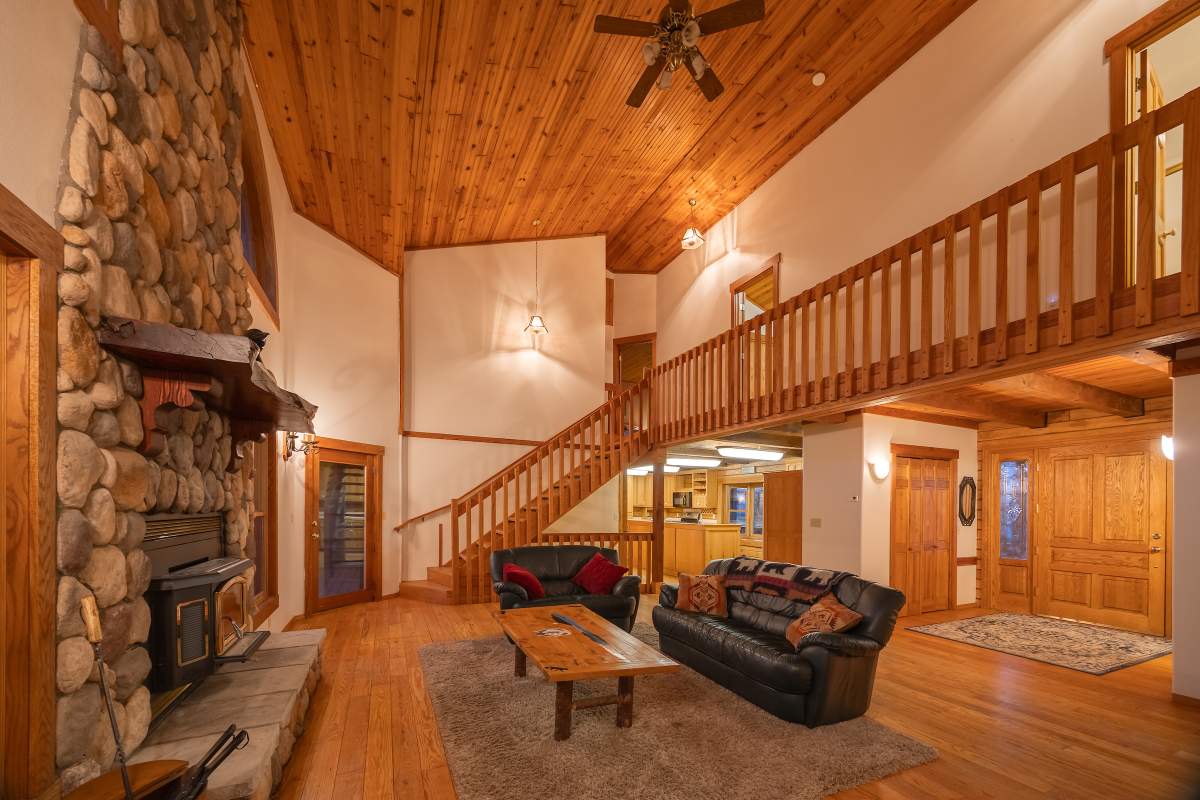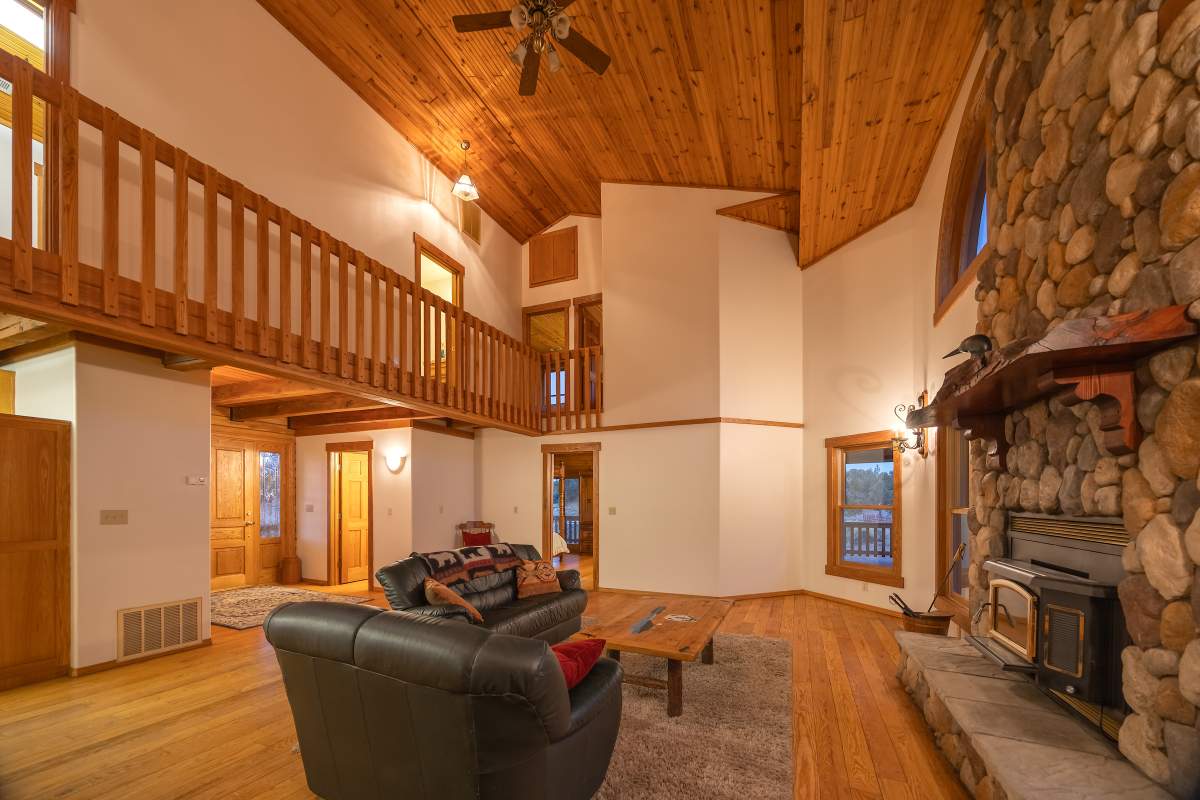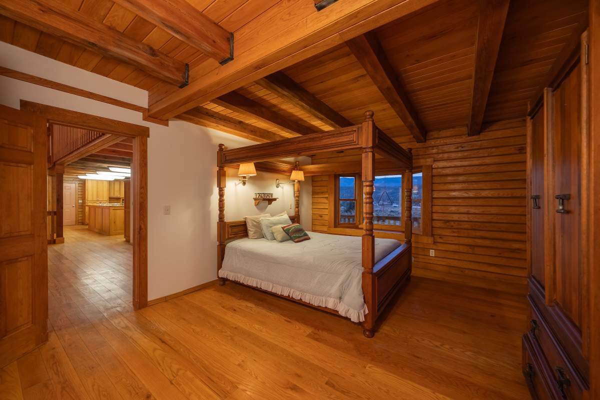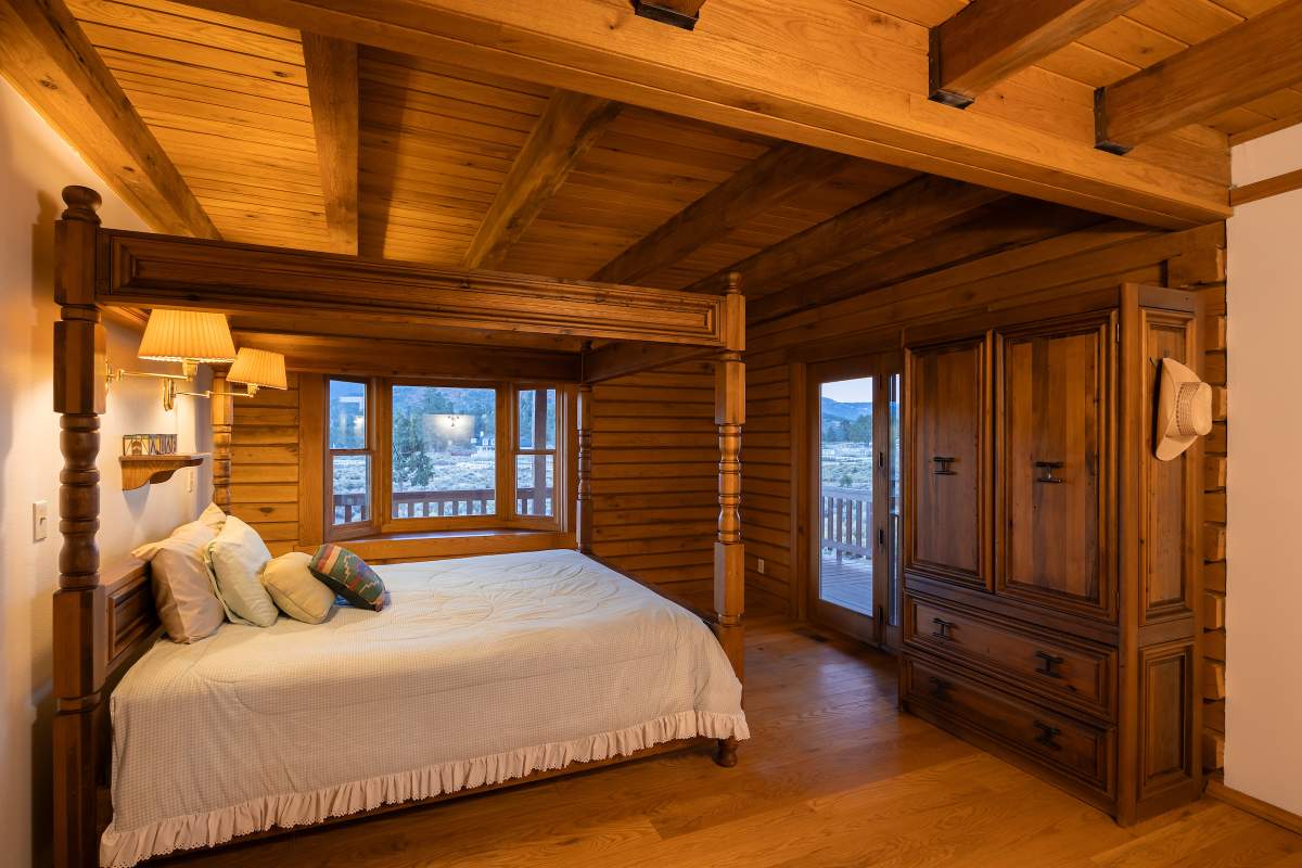 Home…home on the range. Nestled on 2.5 acres in a hidden valley adjoining national forest, you will find this beauty of a custom log home offering ultimate peace and tranquility with wide open views in all directions. Off the beaten path, but easily accessible from the highway, and just steps to the iconic Pacific Crest Trail. Enter the front door and you are welcomed to an impressive great room with soaring T&G ceilings and a grand river rock fireplace. Beautiful solid hardwood flooring throughout, tons of windows allow for washes of natural light in every room. Entertainer’s kitchen has a bay window, an island with additional prep sink, custom cabinetry, and adjacent formal dining room with beamed ceiling and access to the covered back deck. This accommodating ranch-style home has room for a crowd with 6 bedrooms, plus a spacious 1429 sq ft finished basement providing additional living space and myriad storage options, including a wine closet. The primary bedroom on the main level features beamed ceilings, a walk-in closet, and french doors opening to deck; the en suite bathroom boasts an elegant spa tub and separate walk-in shower. Energy efficient items include dual pane windows, central forced air heat, two water heaters, plus laundry. The property is on it’s own private well. This home has been lovingly refreshed and is ready for you to add your personal touches to make it yours. Bandit the burro says: “The apples here are delicious.”