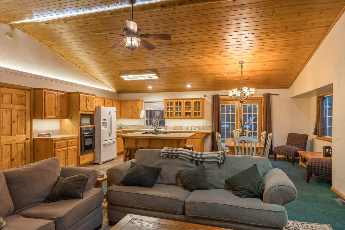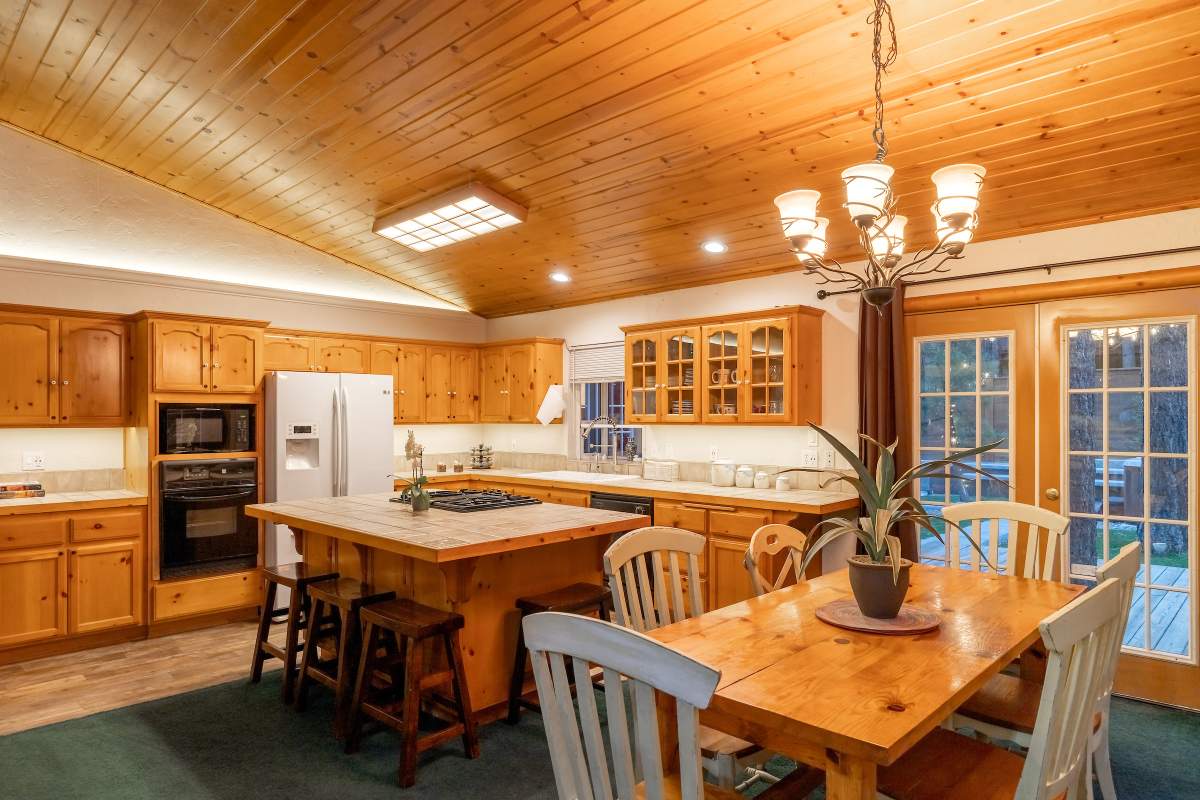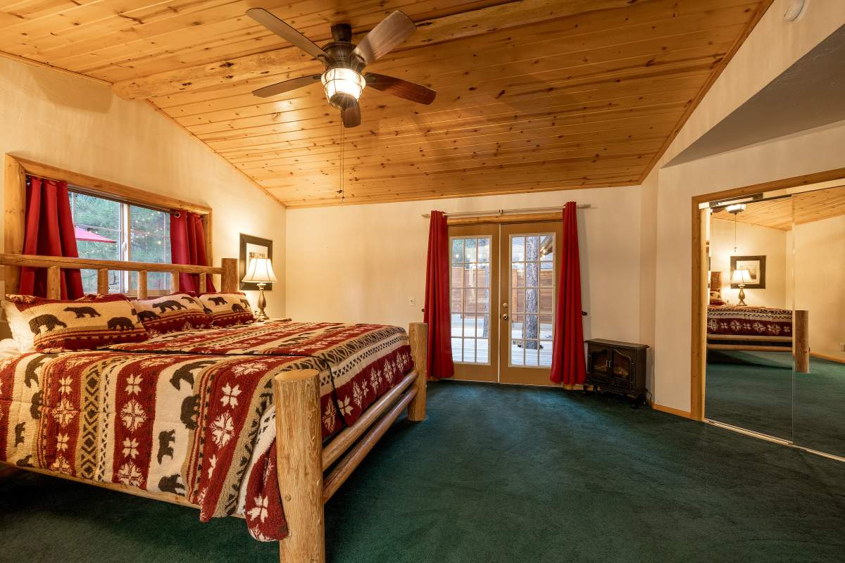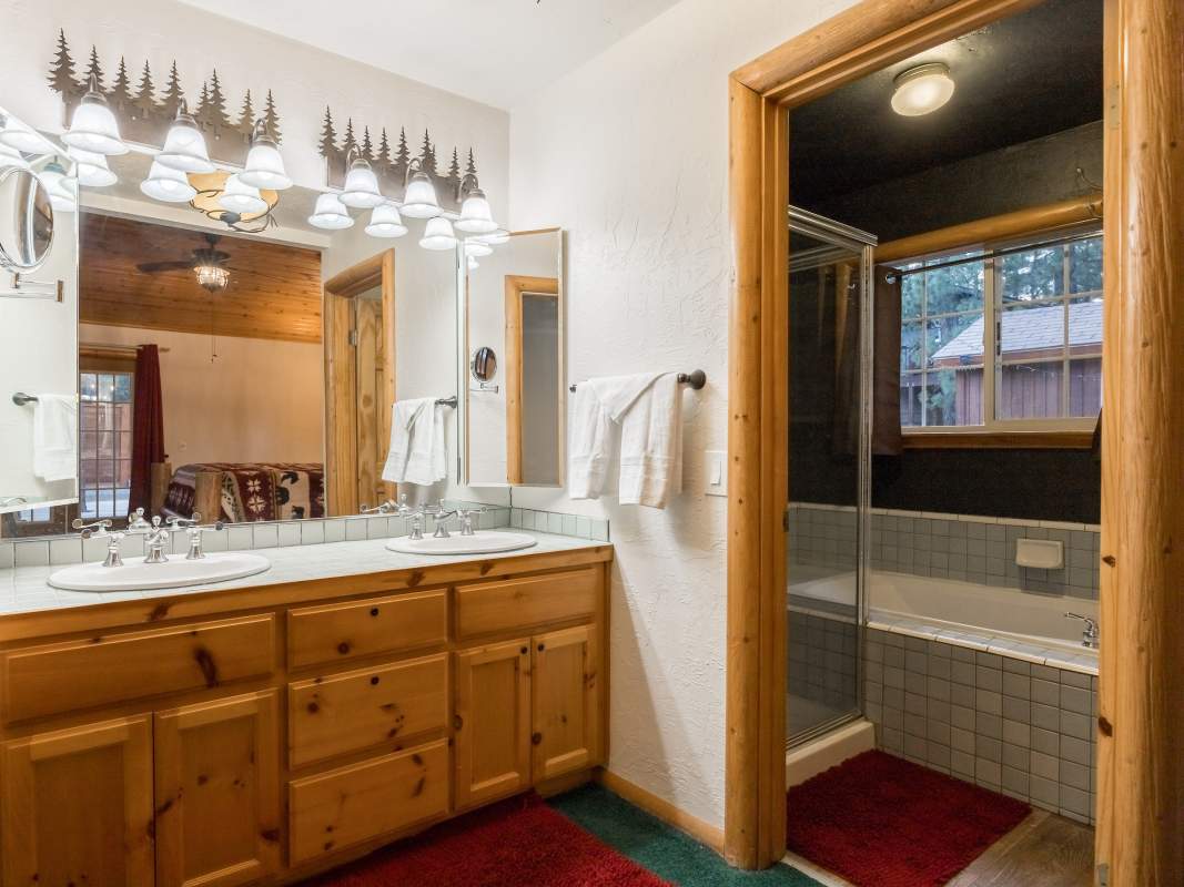 Beautifully maintained and thoughtfully upgraded log-style home ideally located near the lake, Meadow Park, and Snow Summit. This home has so many special attributes and value-added comforts that you just won’t find elsewhere. Comfortable single-level great room style floor plan with rock fireplace, T&G ceilings with custom designed lighting. Entertainer’s kitchen features an island w/gas range, custom cabinetry, garden window over the sink, walk-in pantry, and adjacent dining area. Main bedroom suite has vaulted ceiling, french doors that access the back deck; bath w/dual vanities, separate shower and jetted tub. Enjoy the exquisitely designed outdoor living space including low-maintenance landscaping, two rear decks, spa, concrete sitting areas, surrounded by full superior privacy fencing and mature pines around the property. Newly built shed is ready to install electric and water, suitable for workshop, storage, or kids’ play area. Concrete pad for sauna adjacent to shed and additional concrete pad next to garage for a generator. Securely designed dog run with access from garage and two separate gated areas. Freshly stained covered front porch. Exterior front and back lighting on automatic timers, plus separate circuits for holiday lights. The list goes on…go take a look at this exceptional home before it’s gone.