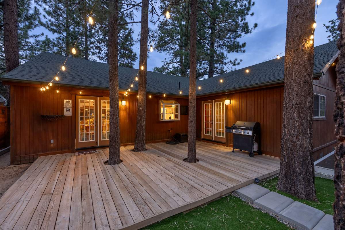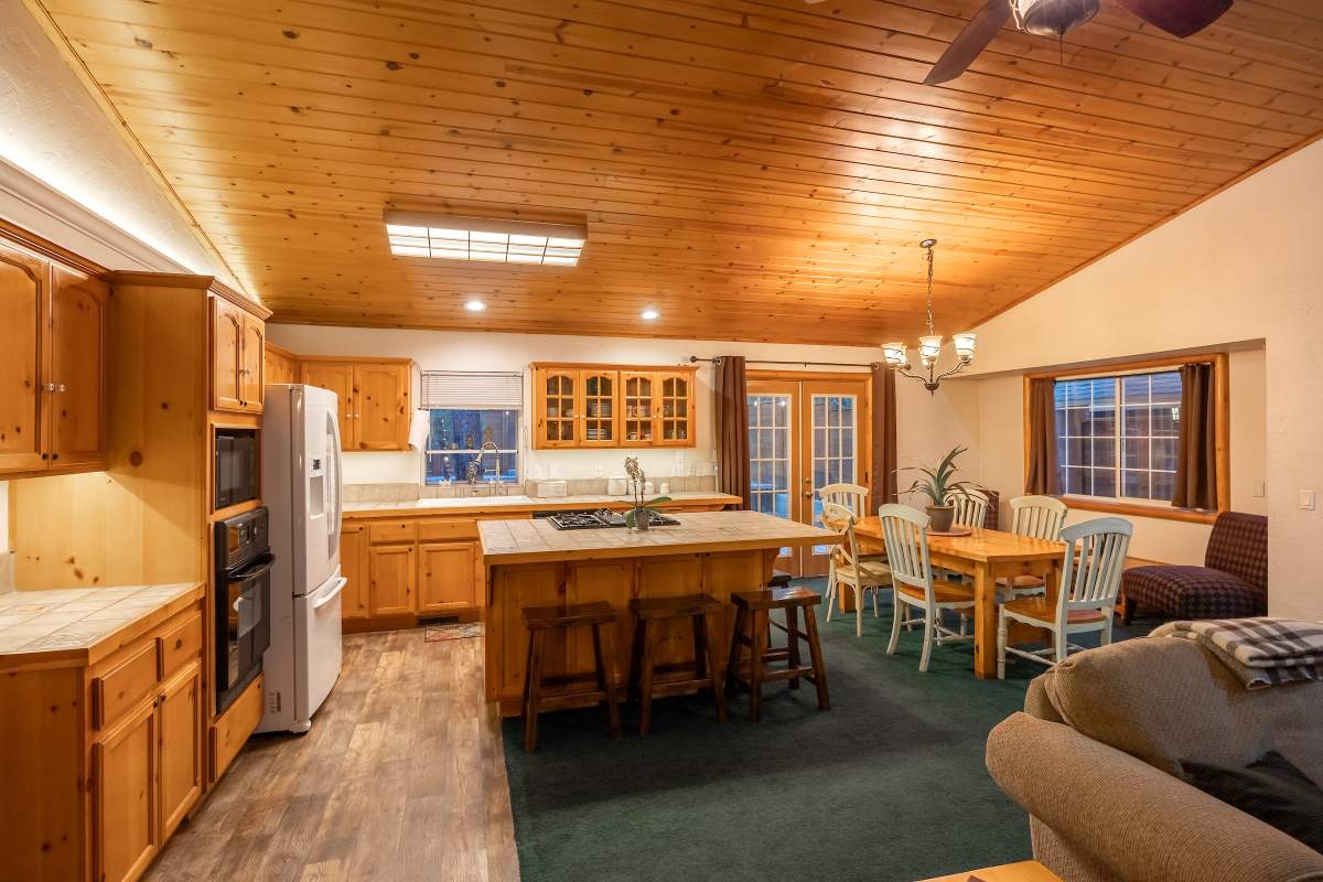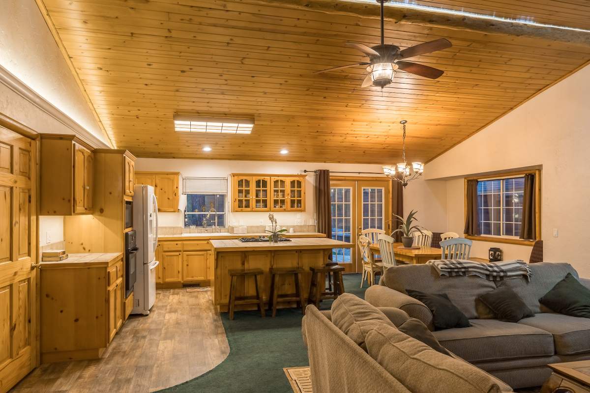 Beautifully maintained and thoughtfully upgraded log-style home ideally located near the lake, Meadow Park, and Snow Summit. This home has so many special attributes and value-added comforts that you just won’t find elsewhere. Comfortable single-level great room style floor plan with rock fireplace, T&G ceilings with custom designed lighting. Entertainer’s kitchen features an island w/gas range, custom cabinetry, garden window over the sink, walk-in pantry, and adjacent dining area. Main bedroom suite has vaulted ceiling, french doors that access the back deck; bath w/dual vanities, separate shower and jetted tub. Enjoy the exquisitely designed outdoor living space including low-maintenance landscaping, two rear decks, spa, concrete sitting areas, surrounded by full superior privacy fencing and mature pines around the property. Newly built shed is ready to install electric and water, suitable for workshop, storage, or kids’ play area. Concrete pad for sauna adjacent to shed and additional concrete pad next to garage for a generator. Securely designed dog run with access from garage and two separate gated areas. Freshly stained covered front porch. Exterior front and back lighting on automatic timers, plus separate circuits for holiday lights. The list goes on…go take a look at this exceptional home before it’s gone.
