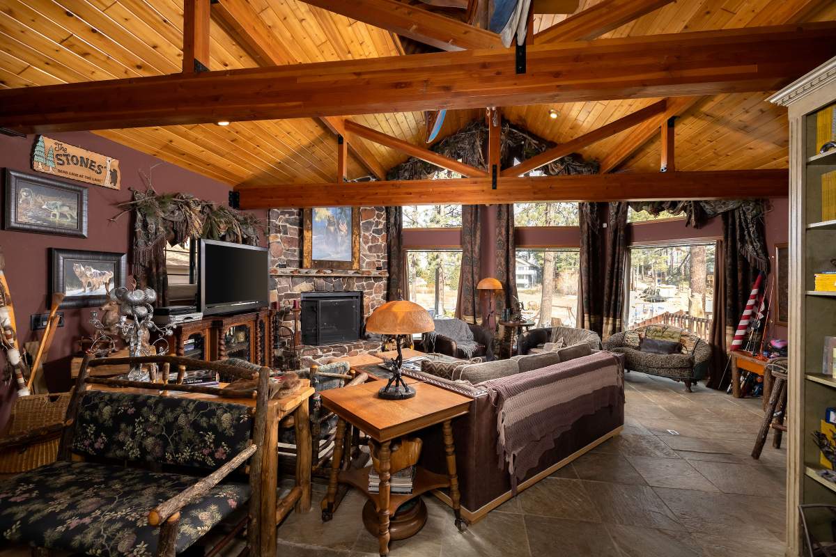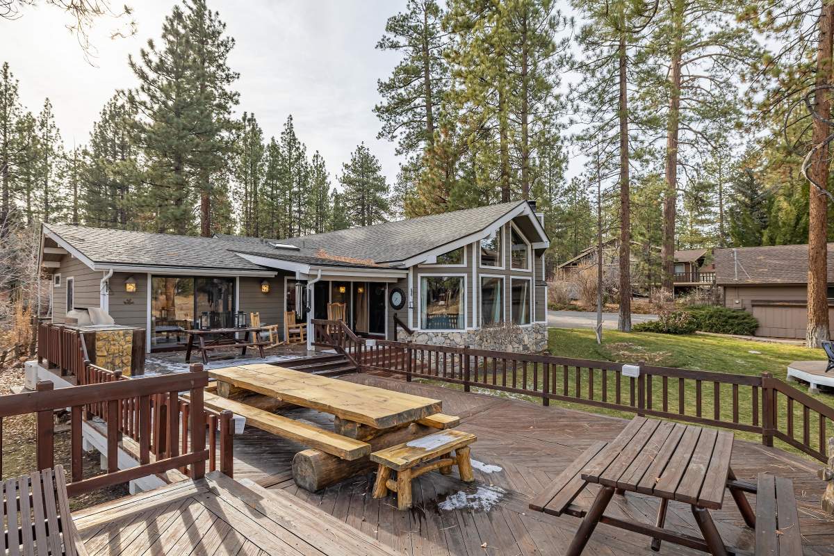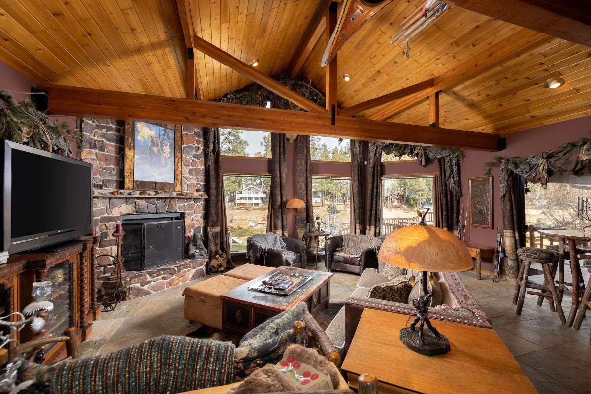 Charming elegant remodeled lakefront home on Mallard Lagoon. This one-of-kind home has the rustic mountain cabin feel with modern upgrades and amenities. Impressive beamed ceilings w/skylights, majestic stone fireplace and beautiful slate floors with radiant heating. Entertainer’s dream kitchen features extensive granite, breakfast bar, large island w/prep sink, and custom painted cabinets that feel like living in a real-life fairy tale. Garage was converted into inviting living space that could be used as a family room or game room w/access to back deck, and has an additional attached bedroom + bathroom with laundry. Enjoy summer BBQs and starry winter nights out on the spacious back decks. Easy year-round access, single-level living on a sprawling 1/3 acre of prime real estate. Included boat slip at The Dock Club at Pine Knot Marina! Start your Big Bear Lake story today.