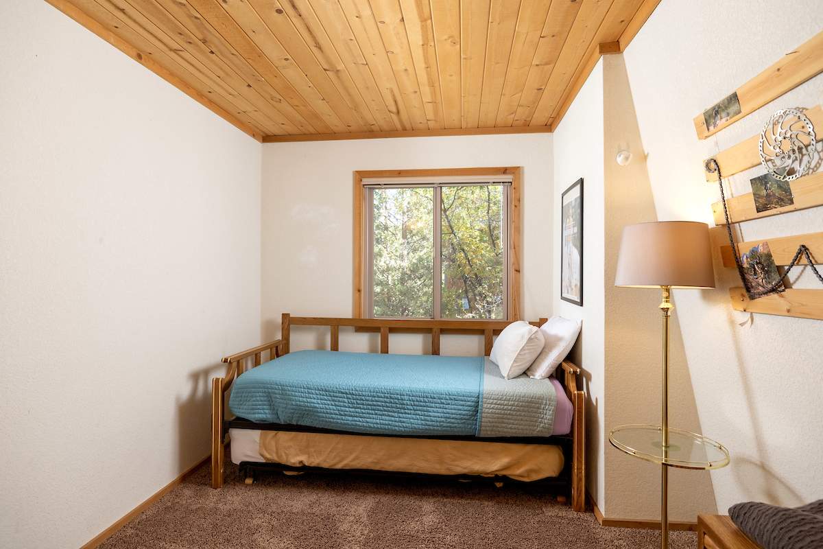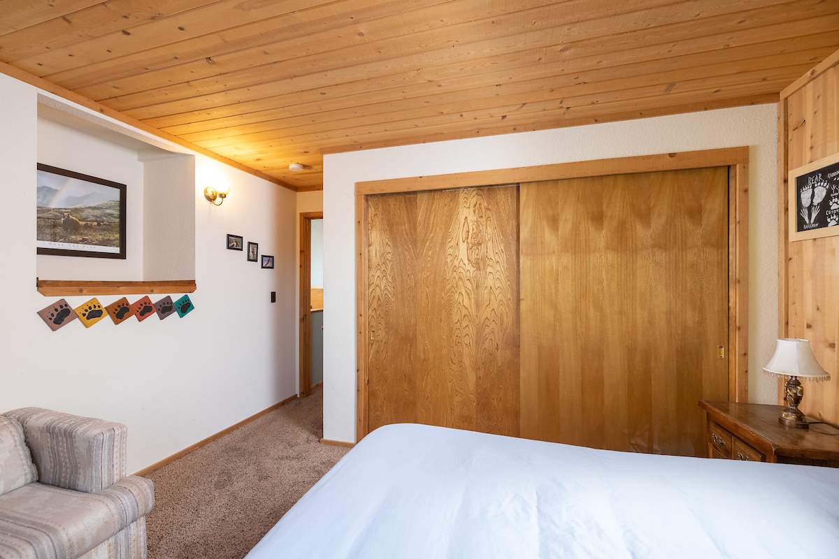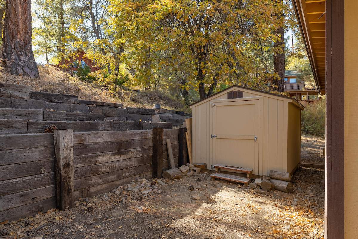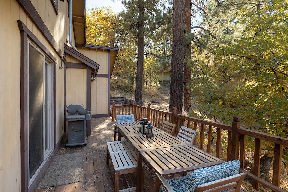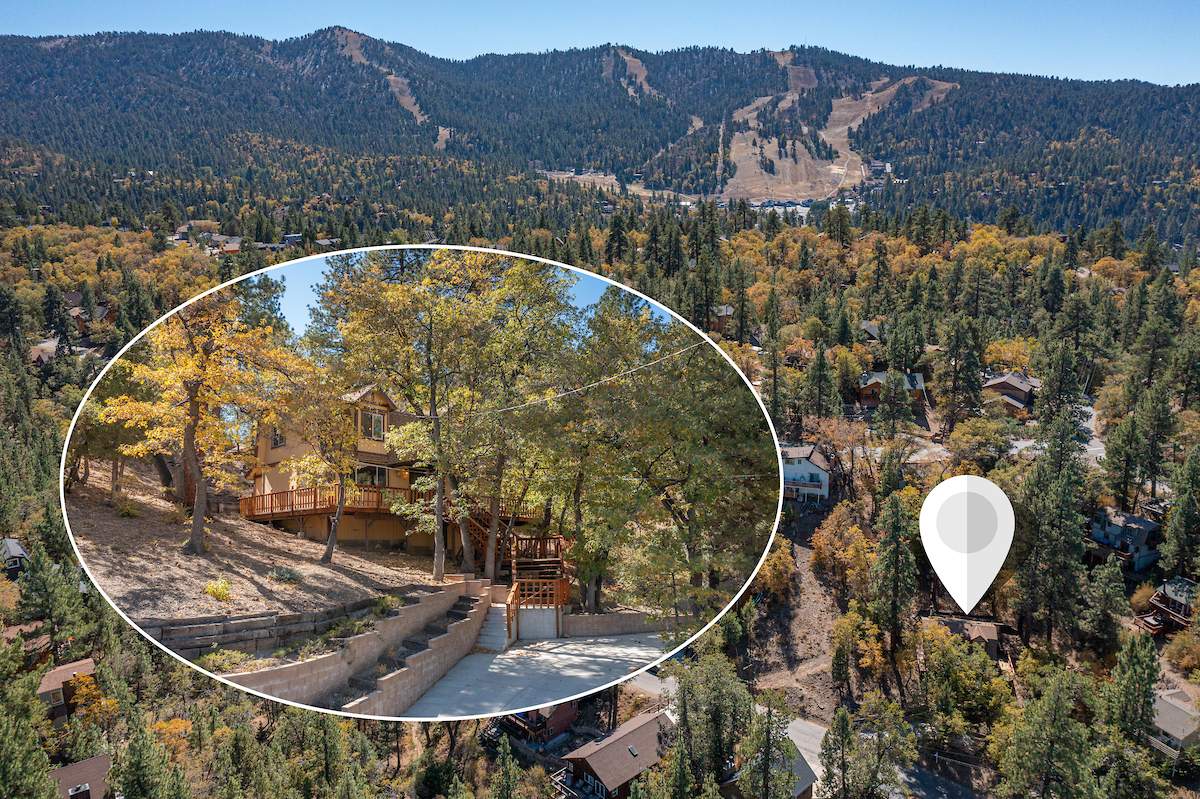 Nestled in the oaks and pines in a sought-after Moonridge location near Bear Mountain, the lake, forest and everything else Big Bear has to offer. This tree house has room for a crowd with 5 bedrooms, 2 full baths, and laundry. Classic gambrel-style has that true mountain cabin feel with beamed ceilings and lots of wood T&G. Cozy brick fireplace with efficient wood-burning stove will warm you right up after a long day on the slopes. Kitchen features custom cabinetry, a dining area and pantry. Enjoy the treed surroundings out on the wraparound deck and gaze at the stars while soaking in the private spa. Capable of accommodating a large family or group, this home will make an awesome weekend getaway and/or income-producing vacation rental investment.