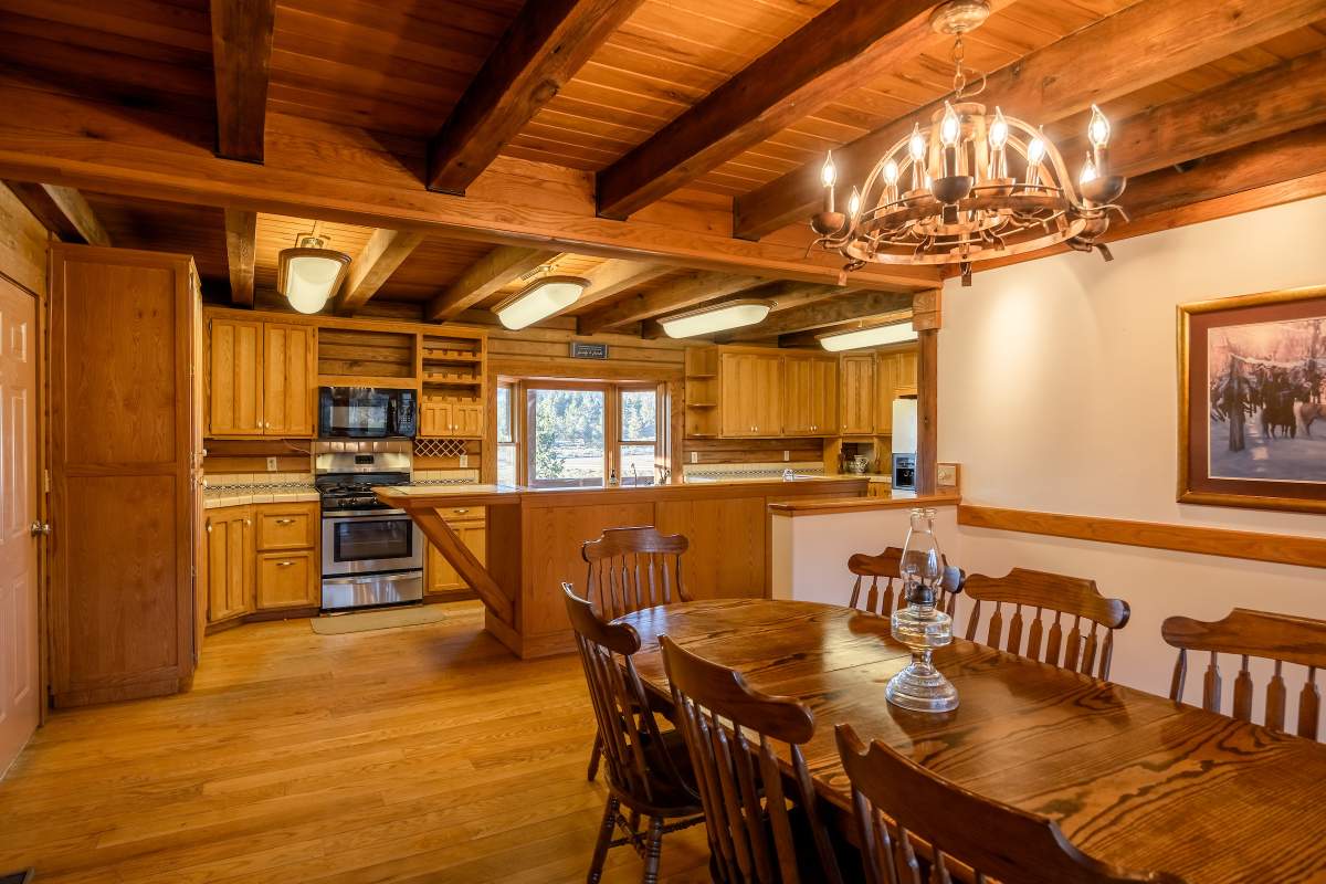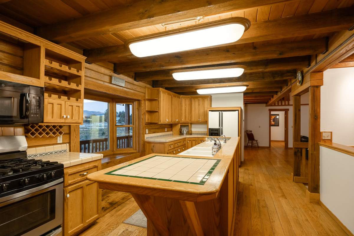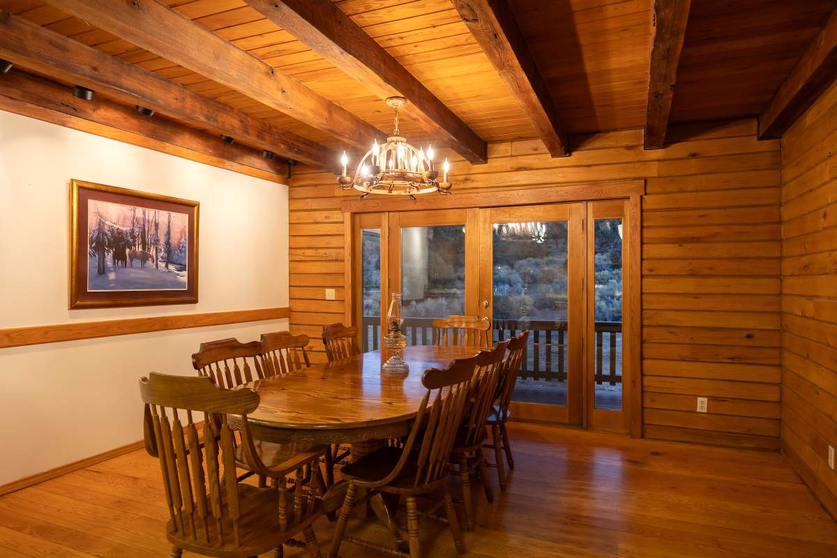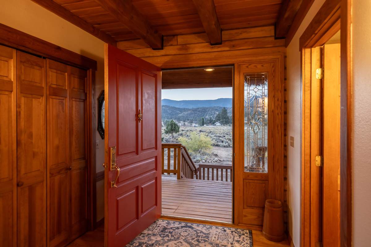 Home…home on the range. Nestled on 2.5 acres in a hidden valley adjoining national forest, you will find this beauty of a custom log home offering ultimate peace and tranquility with wide open views in all directions. Off the beaten path, but easily accessible from the highway, and just steps to the iconic Pacific Crest Trail. Enter the front door and you are welcomed to an impressive great room with soaring T&G ceilings and a grand river rock fireplace. Beautiful solid hardwood flooring throughout, tons of windows allow for washes of natural light in every room. Entertainer’s kitchen has a bay window, an island with additional prep sink, custom cabinetry, and adjacent formal dining room with beamed ceiling and access to the covered back deck. This accommodating ranch-style home has room for a crowd with 6 bedrooms, plus a spacious 1429 sq ft finished basement providing additional living space and myriad storage options, including a wine closet. The primary bedroom on the main level features beamed ceilings, a walk-in closet, and french doors opening to deck; the en suite bathroom boasts an elegant spa tub and separate walk-in shower. Energy efficient items include dual pane windows, central forced air heat, two water heaters, plus laundry. The property is on it’s own private well. This home has been lovingly refreshed and is ready for you to add your personal touches to make it yours. Bandit the burro says: “The apples here are delicious.”