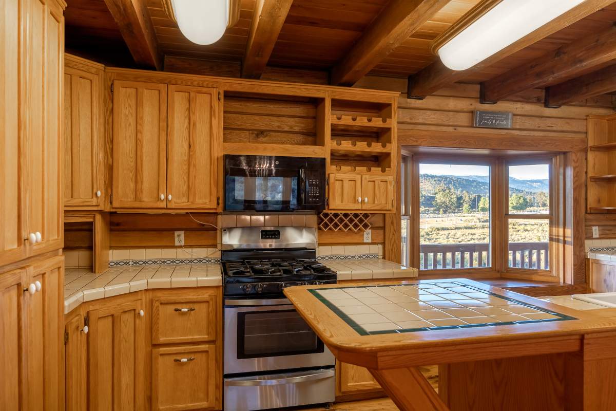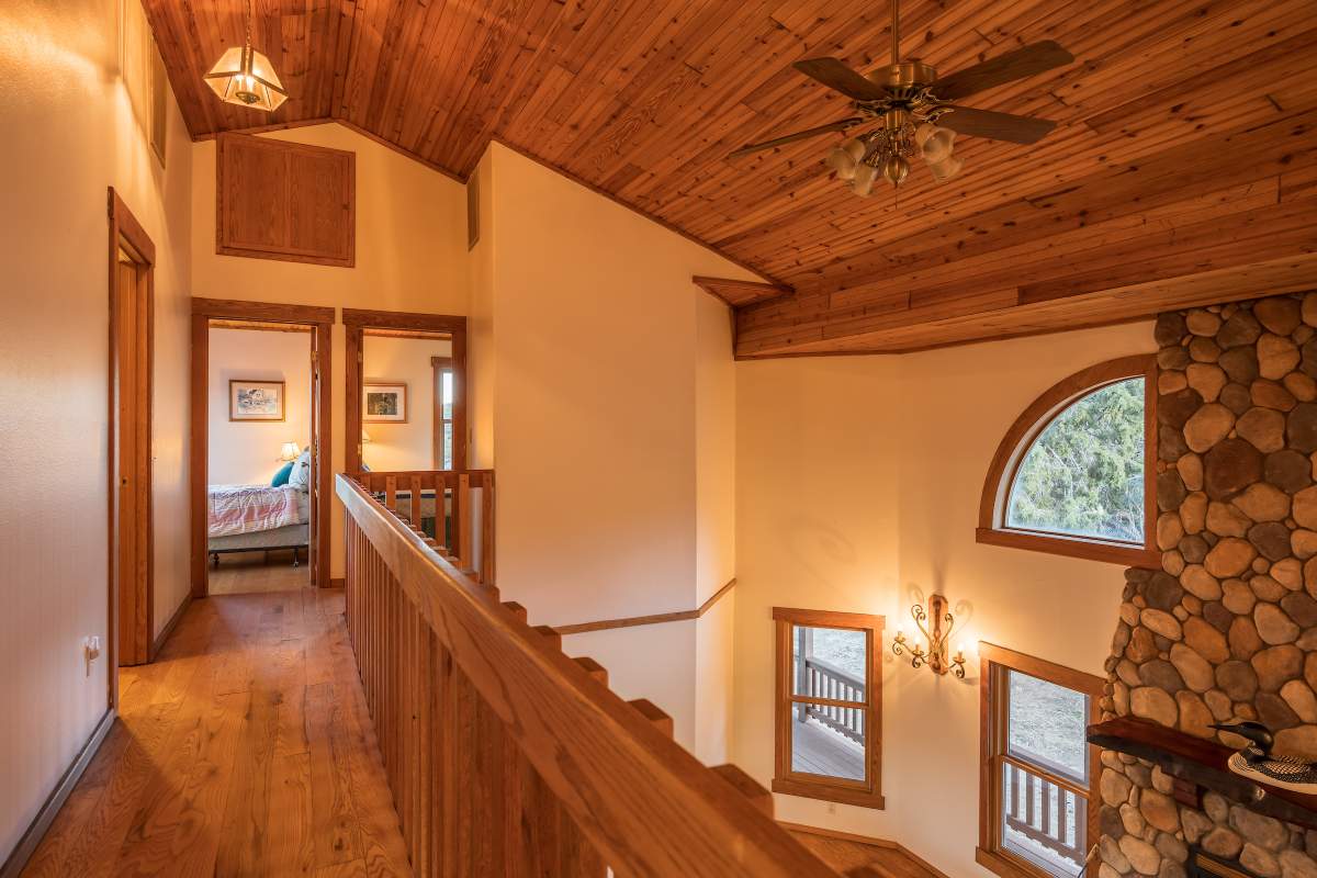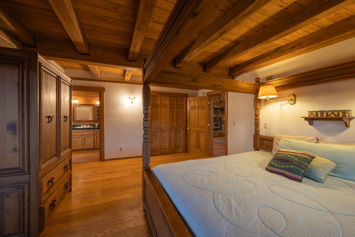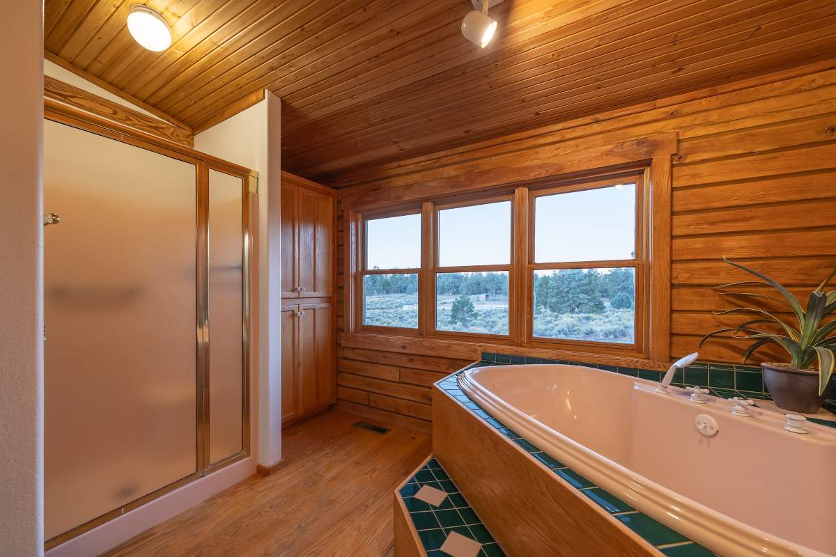 Home…home on the range. Nestled on 2.5 acres in a hidden valley adjoining national forest, you will find this beauty of a custom log home offering ultimate peace and tranquility with wide open views in all directions. Off the beaten path, but easily accessible from the highway, and just steps to the iconic Pacific Crest Trail. Enter the front door and you are welcomed to an impressive great room with soaring T&G ceilings and a grand river rock fireplace. Beautiful solid hardwood flooring throughout, tons of windows allow for washes of natural light in every room. Entertainer’s kitchen has a bay window, an island with additional prep sink, custom cabinetry, and adjacent formal dining room with beamed ceiling and access to the covered back deck. This accommodating ranch-style home has room for a crowd with 6 bedrooms, plus a spacious 1429 sq ft finished basement providing additional living space and myriad storage options, including a wine closet. The primary bedroom on the main level features beamed ceilings, a walk-in closet, and french doors opening to deck; the en suite bathroom boasts an elegant spa tub and separate walk-in shower. Energy efficient items include dual pane windows, central forced air heat, two water heaters, plus laundry. The property is on it’s own private well. This home has been lovingly refreshed and is ready for you to add your personal touches to make it yours. Bandit the burro says: “The apples here are delicious.”