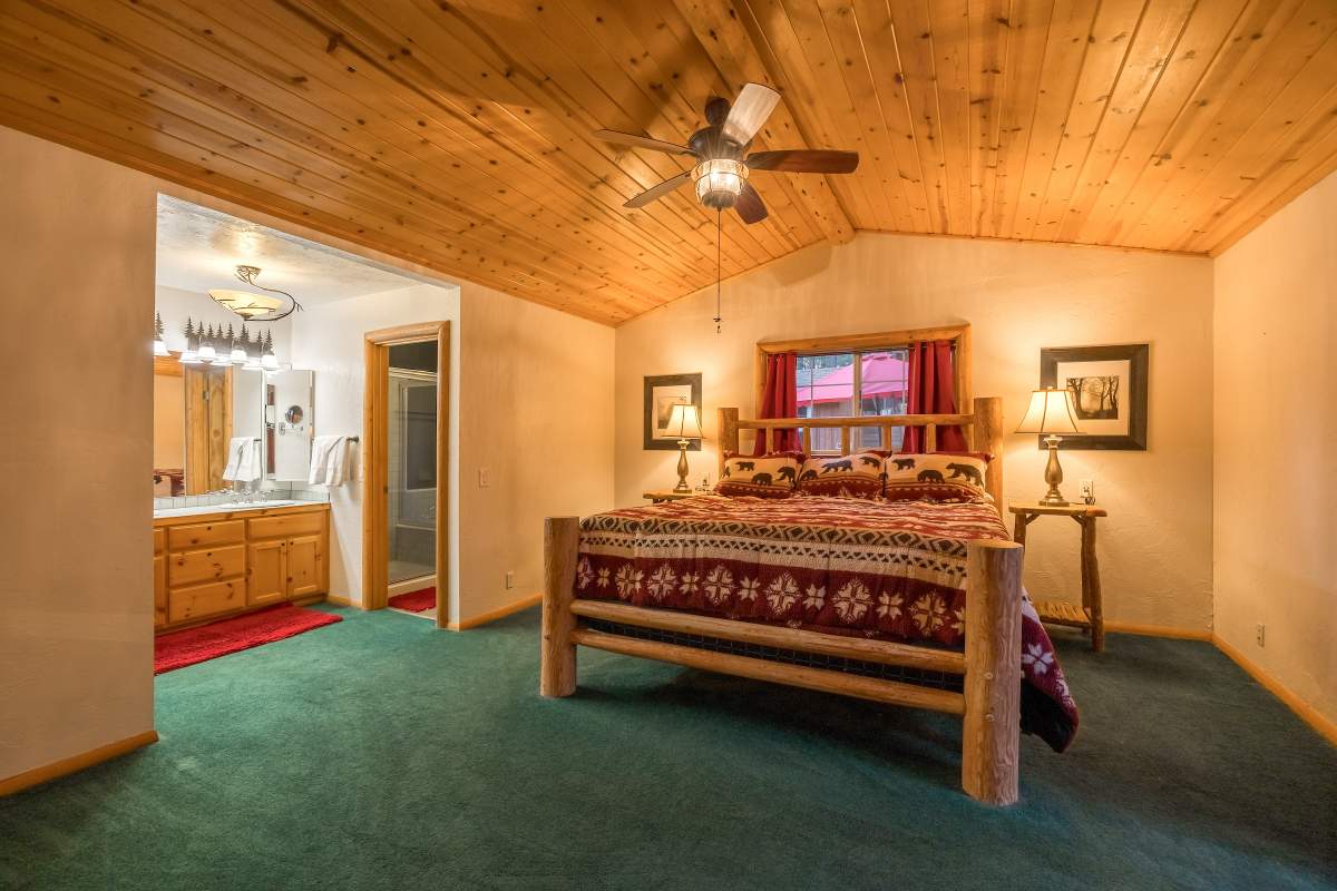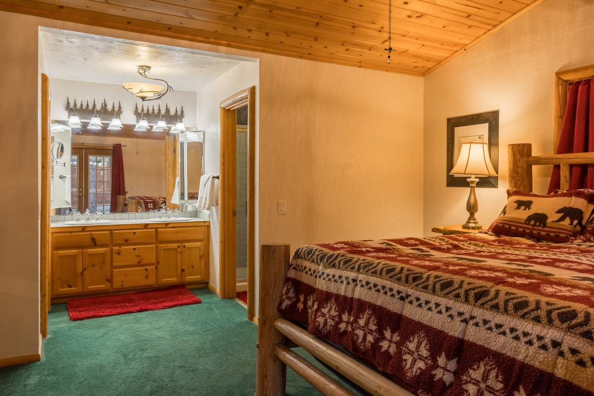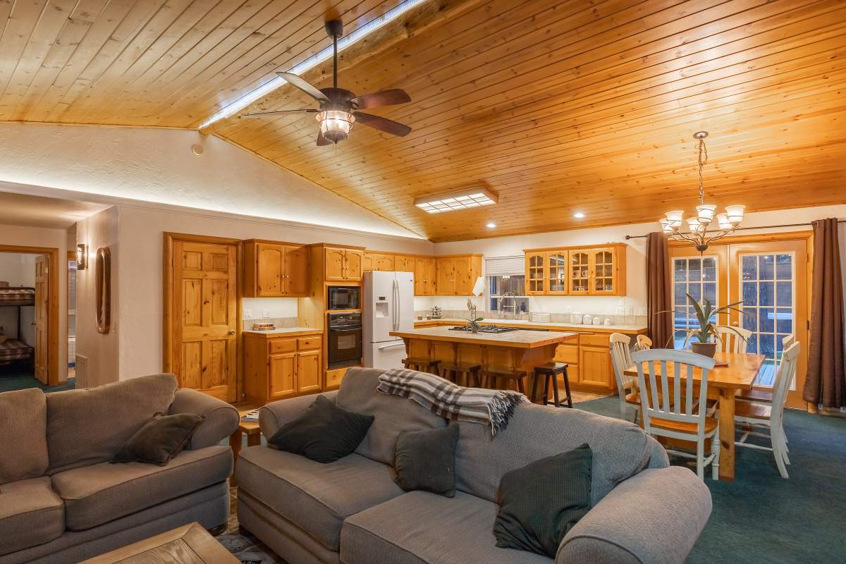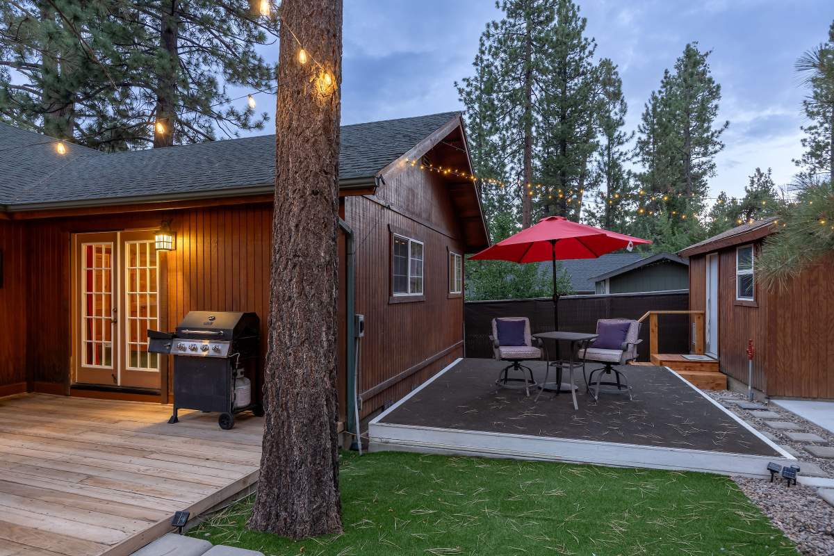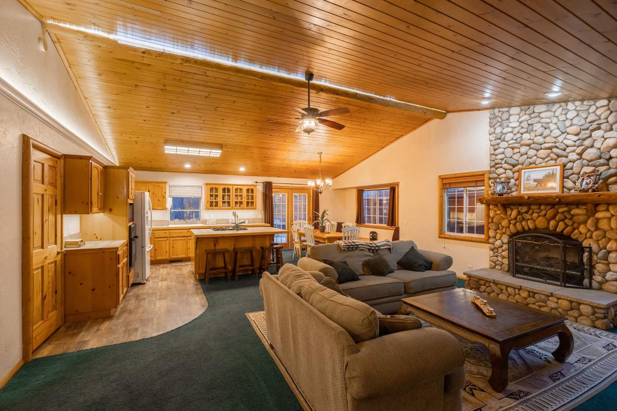 Beautifully maintained and thoughtfully upgraded log-style home ideally located near the lake, Meadow Park, and Snow Summit. This home has so many special attributes and value-added comforts that you just won’t find elsewhere. Comfortable single-level great room style floor plan with rock fireplace, T&G ceilings with custom designed lighting. Entertainer’s kitchen features an island w/gas range, custom cabinetry, garden window over the sink, walk-in pantry, and adjacent dining area. Main bedroom suite has vaulted ceiling, french doors that access the back deck; bath w/dual vanities, separate shower and jetted tub. Enjoy the exquisitely designed outdoor living space including low-maintenance landscaping, two rear decks, spa, concrete sitting areas, surrounded by full superior privacy fencing and mature pines around the property. Newly built shed is ready to install electric and water, suitable for workshop, storage, or kids’ play area. Concrete pad for sauna adjacent to shed and additional concrete pad next to garage for a generator. Securely designed dog run with access from garage and two separate gated areas. Freshly stained covered front porch. Exterior front and back lighting on automatic timers, plus separate circuits for holiday lights. The list goes on…go take a look at this exceptional home before it’s gone.